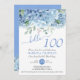 Invitación Blue Hydrangeas Watercolor Floral 100 cumpleaños