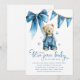 Set the scene for a joyful celebration with these blue jean baby themed baby shower invitations. Featuring an adorable bear in denim dungarees, a sweet denim bow, and playful blue stars scattered across a modern invitation template, they're perfect for honoring the parents to be.