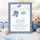Invitación Blue Jean Denim Boy Gingham Baby Shower