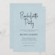 Invitación Blue Linen Simple Black Script Bachelorette Party