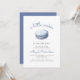 This cute baby shower invitation features a watercolor illustration of a blue macaron cookie. Above, the words "a little cookie" appear in trendy blue handwriting script. Personalize the text with the name of the mom-to-be in blue script and the details in gray sans serif font. The back of the card features a delicate white pattern overlay on a blue background.
