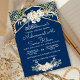 Invitación Blue Minimal Floral Gold Boda musulmana islámica