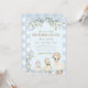 Celebrate your little boy on the way with this charming Mother Goose baby shower invitation in soft blue gingham 💙