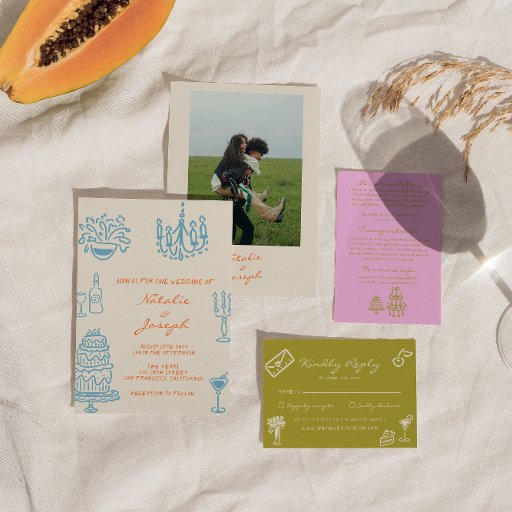 Orange Blue Hand Drawn Wedding SuiteDiseñado por marouane boukouyen