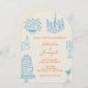 Invitación Blue Orange Hand Drawn Whimsical Arched Wedding