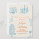 Invitación Blue Orange Hand Drawn Whimsical Fun Wedding