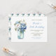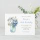 Hermosa invitación para fiestas de cumpleaños con flores de peonía azules y blancas en un frasco de albañil. Ideal para una fiesta de cumpleaños. Las palabras se pueden cambiar para adaptarlas a sus propios detalles o requisitos