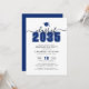 The back of the invitation features space for a photo of the graduate with a blue border, making it a personal and memorable keepsake for friends and family. This version is shown in a blue, black, and white color scheme, but all colors—including the cap, fonts, accents, and photo layout—are fully customizable to match school colors or personal style. A modern and celebratory way to invite loved ones to honor this exciting milestone.