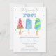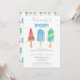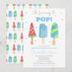 Celebra la llegada de tu niñito con esta invitación de Baby Shower de Blue Popsicle. Con sus coloridas popsicas acuáticas, incluyendo una tajada de sandía roja, un fresco regalo helado azul y un baño azul y verde, este diseño es perfecto para una refrescante y alegre ducha para bebés. Esta invitación a la ducha de bebé es la manera perfecta de marcar el tono para una reunión dulce y alegre. ¡Prepárate para celebrar con brotes de color y diversión! BBS380