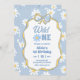 Blue Retro Daisy 1st Birthday Invitation, Wild One Girl First Birthday Invite, Editable Yellow Coquette Bow Floral Birthday