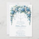 Set a tone of refined elegance for your son's spiritual milestone with this Blue Rose & Silver Cross Baptism Invitation. The design features a breathtaking, lush overhead arch of watercolor roses in serene shades of dusty blue and crisp white, intertwined with soft eucalyptus greenery. Centered beneath the floral arrangement is an intricate silver filigree cross, suspended by delicate shimmering metallic chains and cascading crystal-like beads, offering a sophisticated and modern boutique aesthetic.