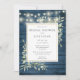 Con luces de cuerdas de bonito y delicada vegetación acuática sobre un fondo azul rústico de madera, esta elegante invitación a la ducha de novias puede ser personalizada con su información especial sobre la ducha de novia. Diseñado por Thisisnotme©