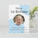 Invitación Blue Shippo 1st Birthday Photo Invitation 招待状