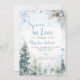 Celebrate the bride-to-be with this enchanting Snow in Love Winter Bridal Shower Invitation, featuring soft watercolor snowflakes, frosted pine trees, and elegant winter blue lettering.