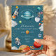 This blue space-themed invitation was inspired by dreamy galaxies and watercolor planets. With rockets, clouds, stars, and adventurous astronauts, it sets the perfect tone for celebrating your child’s very first trip around the sun. A playful, magical design for little space explorers.