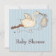 Estripas bebes azules y blancas con cigüeña de color vintage que llevan una invitación a la ducha de un niño. Personalizar con los detalles del evento, estilo de fuente y color de fuente, y en la parte posterior puede eliminar el fondo blanco vintage superior para un fondo blanco. Añade tus detalles al frente y/o al revés simplemente eligiendo el botón naranja "¡Personalizar!" para empezar a añadir los detalles del evento, estilo de fuente, tamaño y color del tipo de letra, y redacción. Tenga en cuenta que todos los diseños de invitación que encontrará en Zazzle son gráficos impresos en papel plano sin joyas, arcos, arcos, piezas grabado en relieve o añadidas.