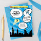 Perfecto para la fiesta de cumpleaños de tu pequeño superhéroe, estas invitaciones incluyen burbujas de historietas, un horizonte de la ciudad, una luz brillante con su edad y todos los detalles del fiesta. Sé una super mamá o super papá y recibe invitaciones de cumpleaños de tu hijo hoy para su próxima celebración de cumpleaños.