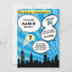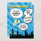 Invitación Blue Superheros Comic Book Estilo fiesta de cumple