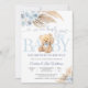 Celebrate your little one with this charming teddy bear baby shower invitation featuring soft blue florals, pampas grass, and whimsical script that reads "we can bearly wait.- Perfect for honoring parents-to-be, this elegant design blends rustic and modern elements for a timeless keepsake. Customize event details easily to create a personalized card that guests will treasure. Ideal for baby showers, gender reveals, or welcoming a sweet new arrival.