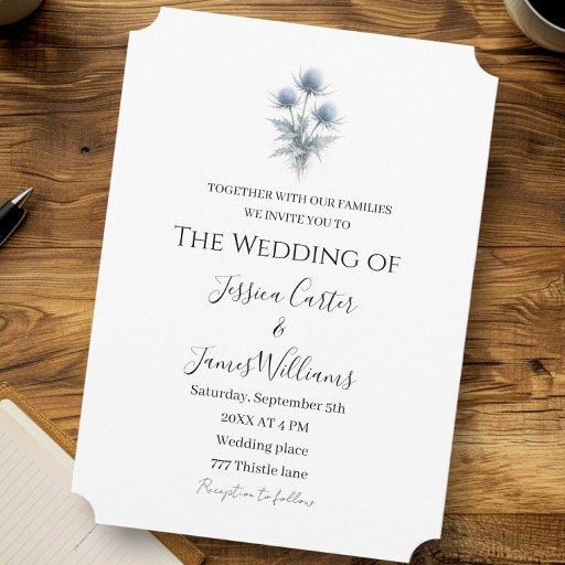 This thistle-inspired design is ideal for rustic, vintage, and nature-themed weddings. Customize your invitation with your wedding details and set the tone for a celebration filled with love and creativity. Printed on premium-quality paper, our Thistle Flowers Wedding Invitation is the perfect way to invite your guests in style.