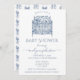 Bienvenido a tu pequeño de estilo clásico con nuestra invitación Baby Shower Blue Toile Bassinet. Con un elegante diseño de toile azul y blanco con delicados acentos de una cuna para bebés, esta invitación atemporal marca el tono perfecto para celebrar a un bebé en el camino. Personalice los detalles de la ducha de bebé con un toque encantador que la familia y los amigos adorarán.