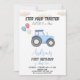 Invitación Blue Tractor cualquier edad, cumpleaños de Farm Bo