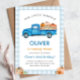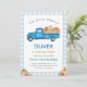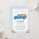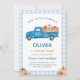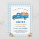 Invitación Blue Truck & Pumpkin Fall Farm Gingham Birthday