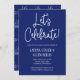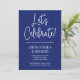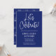 ¡Esta divertida invitación blanca a la boda azul será la manera perfecta de invitar a tus amigos y familia a un fiesta de celebración informal! ¡Invite a sus amigos y familiares a pasar una noche de diversión!