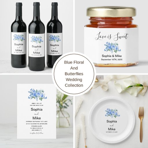 Blue Watercolour Floral Butterflies WeddingDiseñado por Creative K