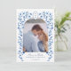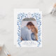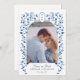 Elegante y único Color de la Mano pintado Flores Blue & White Delft y hojas alrededor de un marco de arco con foto de parejas Guardar tarjeta de fecha