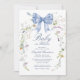 Invitación Baby Shower Blue Wildflower Bow Baby In Bloom Esta elegante invitación incluye delicadas flores silvestres acuáticas, un arco acuarela y letras manuscritas.