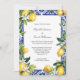 Invitación Blue Yellow Lemon Mediterranean Tile Wedding