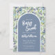Una bonita y jovial "Berry Sweet", la decoración de una ducha de bebé con arándanos de color azul acuático y hojas verdes. Una tipografía de escritura a mano en negrita y blanca mezclada con una fuente simple en un arco azul polvoriento. Puedes cambiar los colores de las fuentes a lo que quieras. También puede cambiar el color de fondo en la parte delantera y trasera, así como el arco (círculo superior y rectángulo en el diseño). La Invitación Baby Shower Blueberry Berry Sweet es perfecta para primavera y verano, o en cualquier época del año. Disponible en forma de invitación impresa, o como una invitación digital descargable que puede enviar por correo electrónico o que ha impreso localmente.