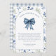 Blueberry Berry Sweet Baby Shower Gracias - Celebra la llegada de una preciosa pequeña con esta encantadora Invitación Blueberry Berry Sweet Baby Shower. Este elegante diseño combina a la perfección la naturaleza con el estilo moderno, adornado con productos de la tradición azul, de las plumas y frescos, enclavados en una delicada vegetación. Un suave arco azul aporta un toque dulce, realzando el estilo original y sofisticado de la invitación. El flujo de bailes de caligrafía a través de la tarjeta, combinado con tipografía moderna y elegante, creando un equilibrio armonioso entre tradición y elegancia contemporánea. Es una invitación gentil y conmovedora que marca el tono para una celebración tan dulce como el bebé en el camino. La parte posterior de la invitación presenta un patrón de gingham de coordinación, Invitación es parte de una colección.
