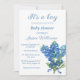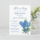 It's a Boy! Flores de arenas azules, acuarela pintada por Monika Howarth. Texas Bluebonnets. Naturaleza, ilustracion floral azul invitación a la ducha de bebé. Personalízalo con tus detalles.
