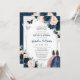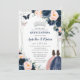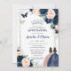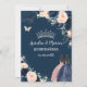 Invitación Blush Azul Marino Floral Plata Gemelas Quinceañera