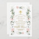 Invitación Primera Comunión. Elegant card design featuring watercolour delicate pink, blush flowers, a faux gold shining cross, on a white background. Use Personalize tool to add your info. For matching items, please, visit my Religious Events Collection.