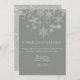 A blush gray and silver glitter snowflake Christmas winter wonderland wedding invitation is perfect for the holiday season. on a mauve gray background featuring white and silver-grey glitter snowflake frame.