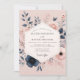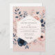 Embrace a romantic aesthetic with this elegant artistic composition. A beautiful arrangement of navy blue anemones and delicate blush pink roses creates a stunning visual contrast. Soft, painterly foliage in dusty blue hues cascades gracefully against a soft pastel background, perfect for a sophisticated and timeless matrimonial union.