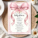 Invitación Blush Pink Bow Baby Shower Invitation Editable Ele