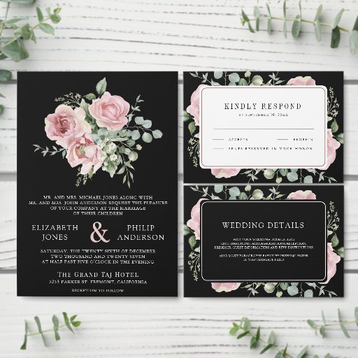 Blush Pink Floral Eucalyptus Black WeddingDiseñado por Shabbir D