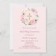 Invitación Blush pink florals cross First Communion