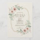 Soft and romantic, this blush pink bridal shower invitation features delicate watercolor florals framing a modern gold geometric hexagon. The gentle color palette of pink roses, eucalyptus, and sage greenery creates an ethereal garden aesthetic. Perfect for elegant spring or garden weddings seeking a contemporary yet feminine design with metallic accents.