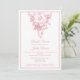 This elegant bridal shower invitation features a refined blush pink Toile de Jouy–inspired floral design with delicate vintage detailing. Inspired by classic French stationery and romantic Parisian aesthetics, the soft blush palette creates a warm and timeless atmosphere, perfect for celebrating the bride-to-be.