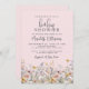 Muted Pastel Boho Botanical Garden Baby Shower Invitation. Celebrate the mom-to-be with this elegant boho design featuring a blush pink background on both the front and back for a soft, romantic, and timeless look that works beautifully from spring through autumn. At the top, “Baby Shower” is displayed in a refined mix of script and serif typography in gentle gray tones for an elegant yet modern feel.