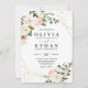 Invitación Blush Rosa Oro Geométrico y Magnolia Blanca Flora