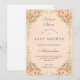 An ornate floral arch of peach and buttercream roses surrounds this romantic garden-inspired design, creating a soft heirloom aesthetic with timeless charm. Delicate greenery, layered blossoms, and a classic oval frame give it a refined Victorian feel while keeping the layout airy and balanced. Perfect for a spring celebration, garden brunch, or elegant afternoon gathering. The structured botanical border frames your event details beautifully while maintaining a graceful, storybook finish.