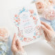 Invitación para la Cena de Ensayo de Lazo Azul y Florales Rosados. Establece un tono encantador y sofisticado para tu celebración previa a la boda con esta caprichosa invitación para la Cena de Ensayo. Diseñada para la novia moderna que ama la estética "nueva tradicionalista", esta invitación presenta una extravagante guirnalda floral de acuarela pintada a mano adornada con un característico lazo coqueto de color azul claro. La disposición artística incluye ilustraciones personalizadas de champán, un pastel de varios pisos, un jarrón de flores rococó y velas encendidas, evocando el sentimiento de una elegante fiesta de jardín íntimo. La caligrafía elegante y floreada se combina con tipografía limpia para garantizar que los detalles de su evento sean hermosos y fáciles de leer. Ya sea que esté organizando una cena formal o una reunión relajada en la
