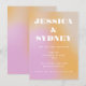 Invitación de boda abstracta retro con gradiente de rosa y naranja