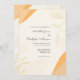 La Invitación a la Boda Resumen Moderna presenta una línea de la hoja botánica de color dorado suave con formas abstractas de melocotón, naranja y crema. Animada y colorida invitación a la boda de durazno.
